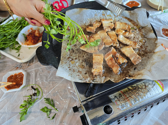 | 미나리 + 삼겹살 | 기름진 삼겹살을 상큼하게 잡아주는 깔끔한 환상 조합 |